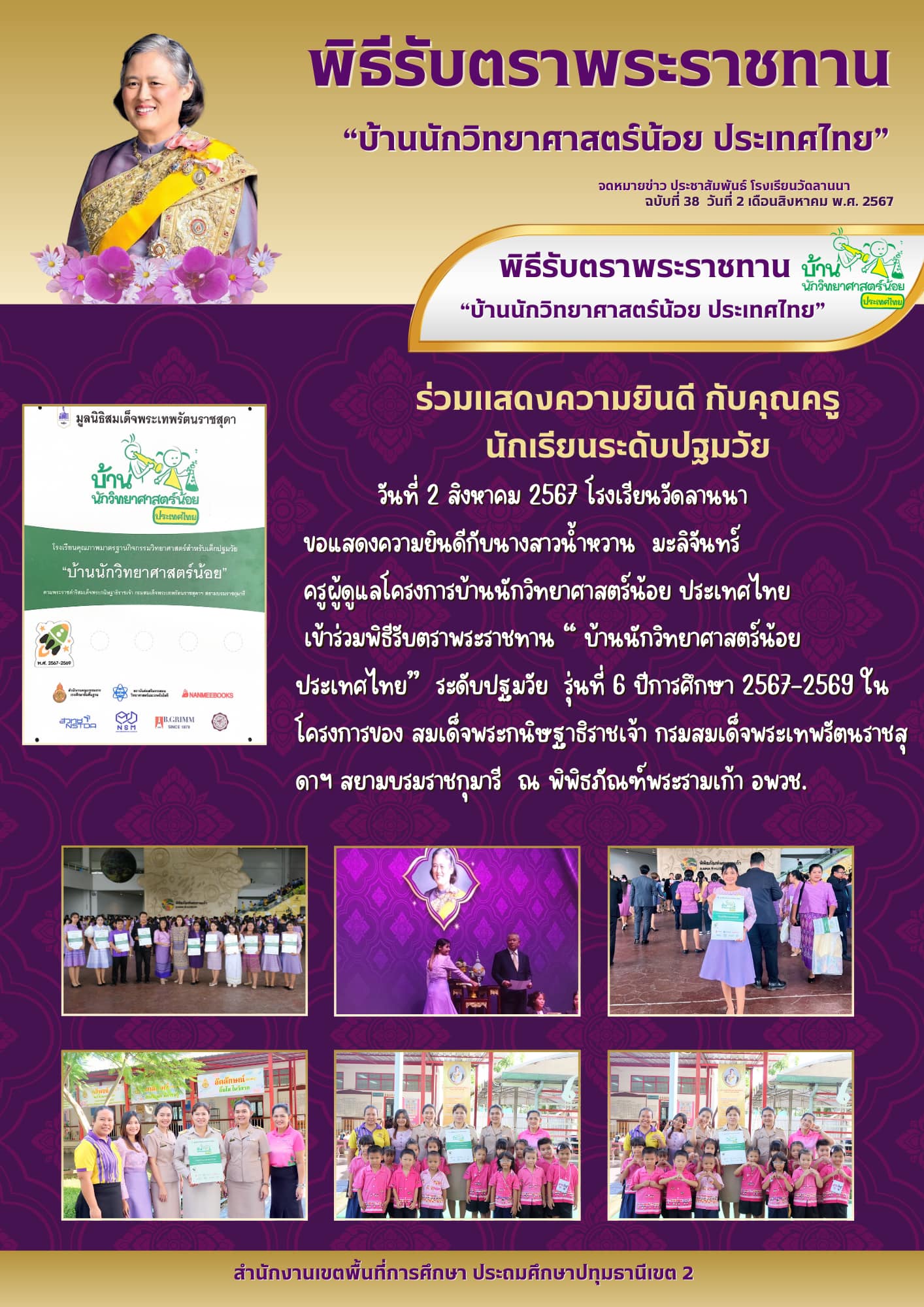 โรงเรียนวัดลานนา เข้าร่วมพิธีรับตราพระราชทาน ? บ้านนักวิทยาศาสตร์น้อยประเทศไทย? ระดับปฐมวัย รุ่นที่ 6 ปีการศึกษา 2567-2569