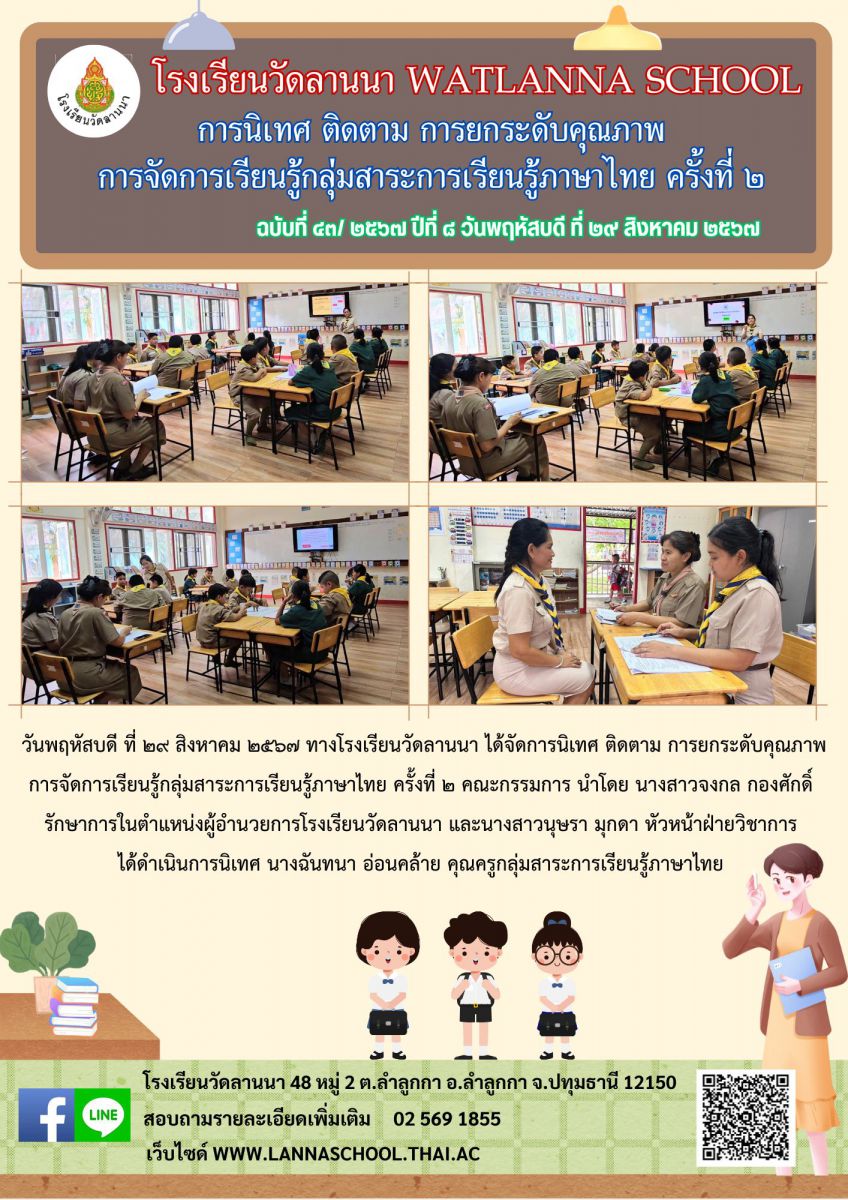 เมื่อวันพฤหัสบดี ที่ ๒๙ สิงหาคม ๒๕๖๗ ทางโรงเรียนวัดลานนา ได้จัดการนิเทศ ติดตาม การยกระดับคุณภาพ