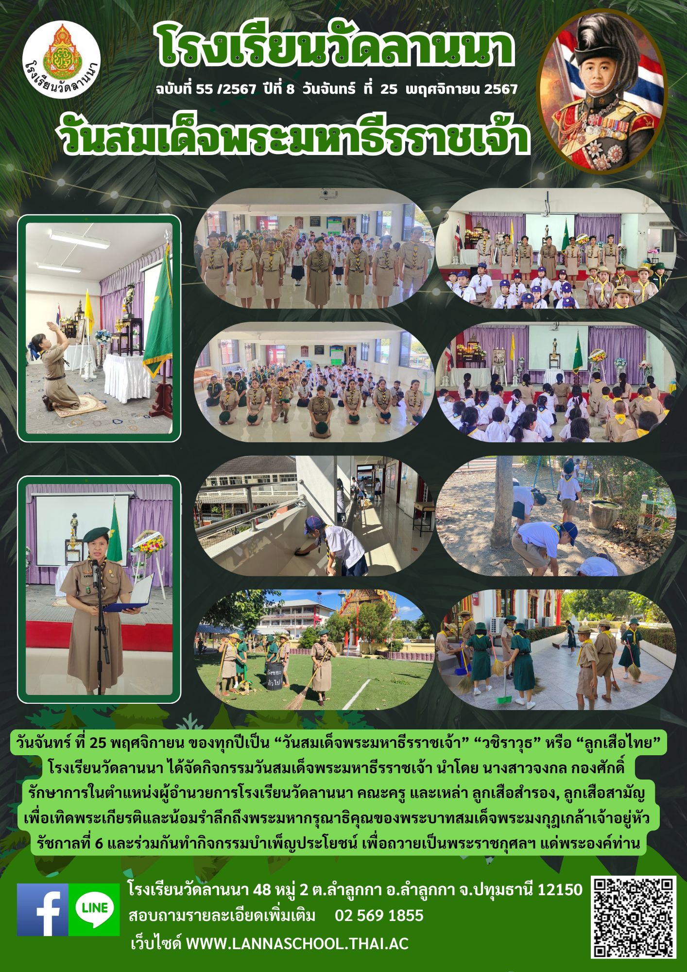 วันจันทร์ ที่ 25 พฤศจิกายน ของทุกปีเป็น “วันสมเด็จพระมหาธีรราชเจ้า” “วชิราวุธ” หรือ “ลูกเสือไทย” โรงเรียนวัดลานนา ได้จัดกิจกรรมวันสมเด็จพระมหาธีรราชเจ้า นำโดย นางสาวจงกล กองศักดิ์ รักษาการในตำแหน่งผู้อำนวยการโรงเรียนวัดลานนา คณะครู และเหล่า ลูกเสือสำรอง, ลูกเสือสามัญ