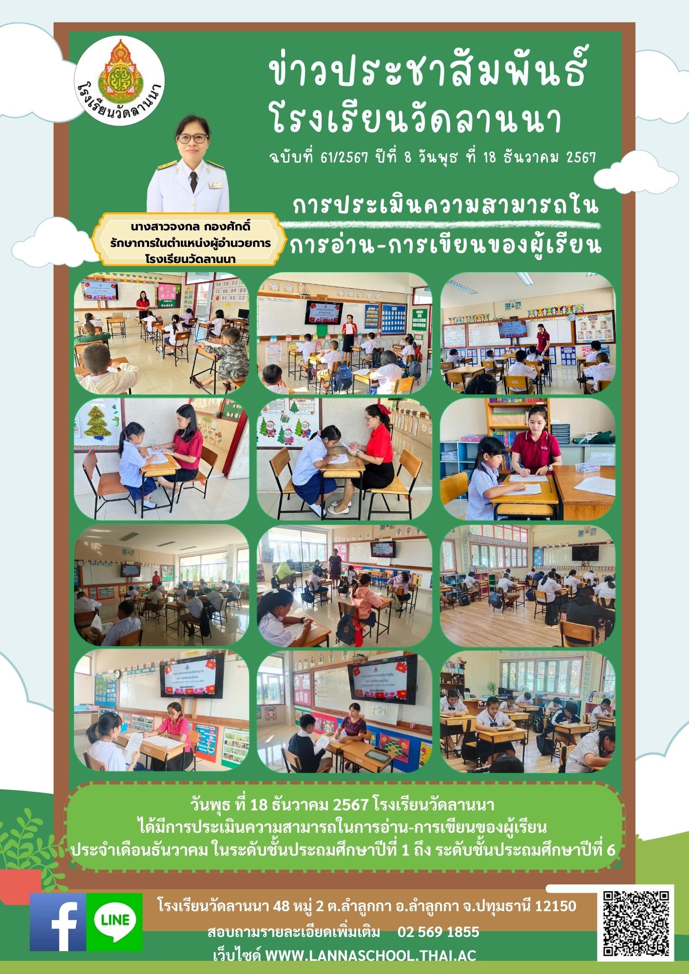วันพุธ ที่ 18 ธันวาคม 2567 โรงเรียนวัดลานนา ได้มีการประเมินความสามารถในการอ่าน-การเขียนของผู้เรียน ประจำเดือนธันวาคม ในระดับชั้นประถมศึกษาปีที่ 1 ถึง ระดับชั้นประถมศึกษาปีที่ 6