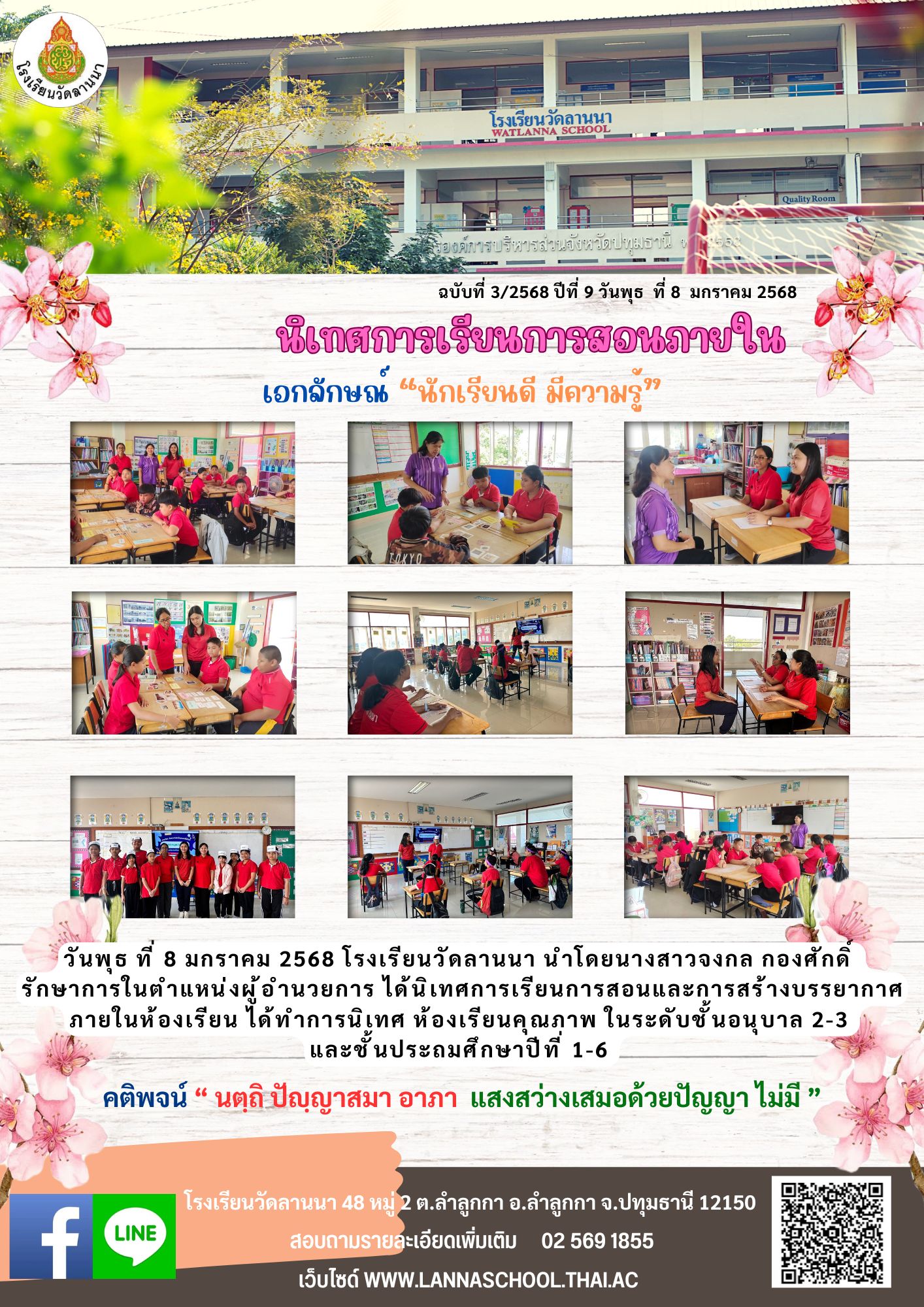 วันพุธ ที่ 8 มกราคม 2568 โรงเรียนวัดลานนา นำโดยนางสาวจงกล กองศักดิ์ รักษาการในตำแหน่งผู้อำนวยการ