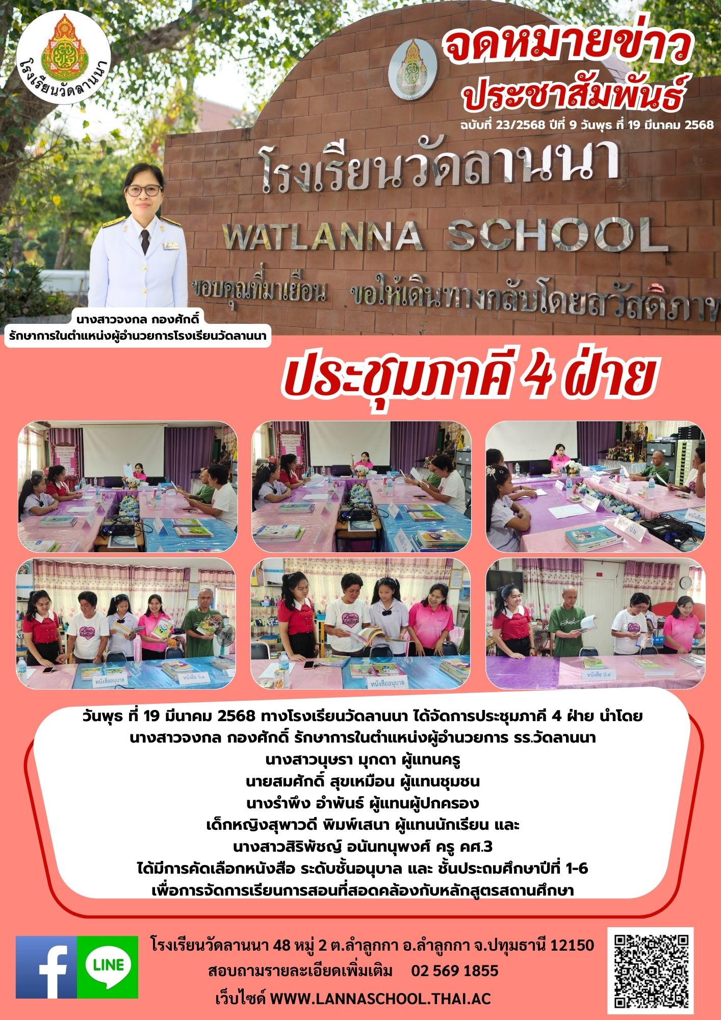 วันพุธ ที่ 19 มีนาคม 2568 ทางโรงเรียนวัดลานนา ได้จัดการประชุมภาคี 4 ฝ่าย นำโดย