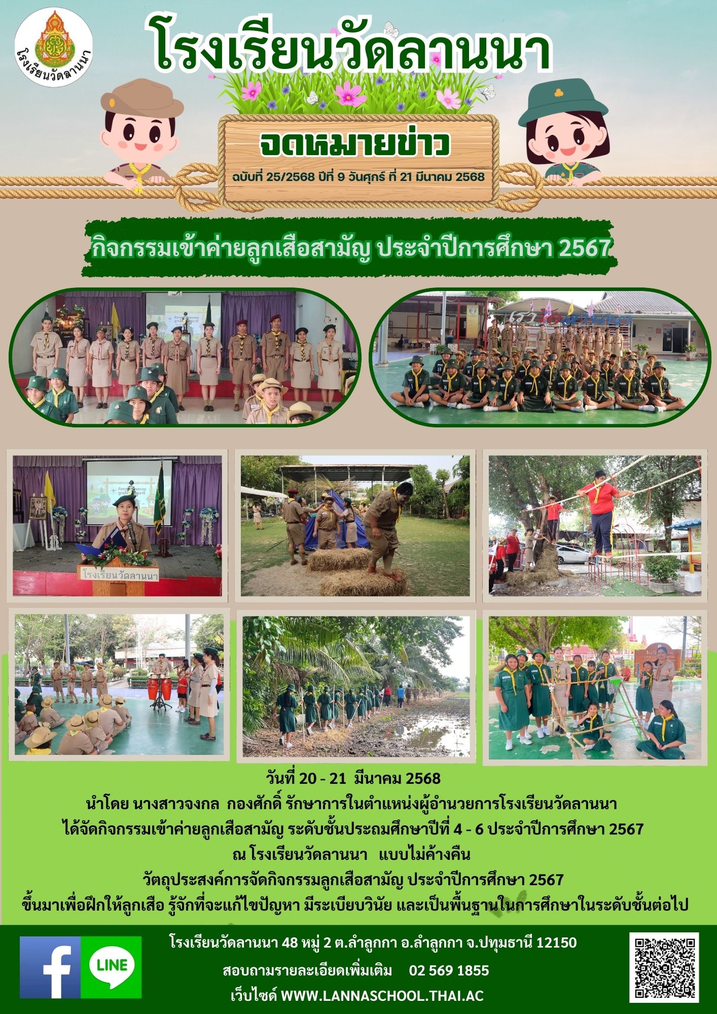 ได้จัดกิจกรรมเข้าค่ายลูกเสือสามัญ ระดับชั้นประถมศึกษาปีที่ 4 - 6 ประจำปีการศึกษา 2567 ณ โรงเรียนวัดลานนา แบบไม่ค้างคืน