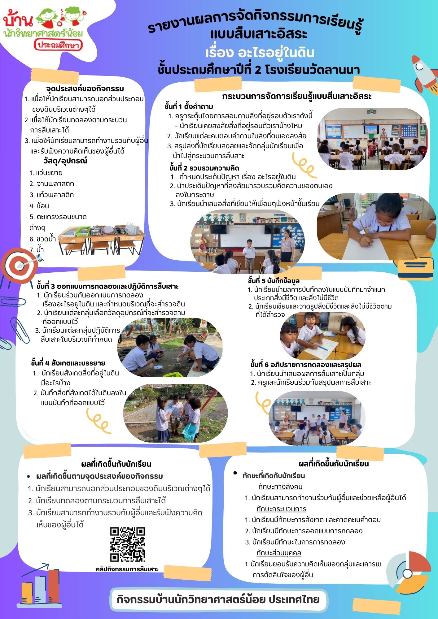 รายงานผลการจัดกิจกรรมบ้านนักวิทยาศาสตร์น้อย ประเทศไทย ระดับชั้นประถมศึกษาปีที่ 1-3 ปีการศึกษา 2567 โดยกิจกรรมแบ่งเป็น