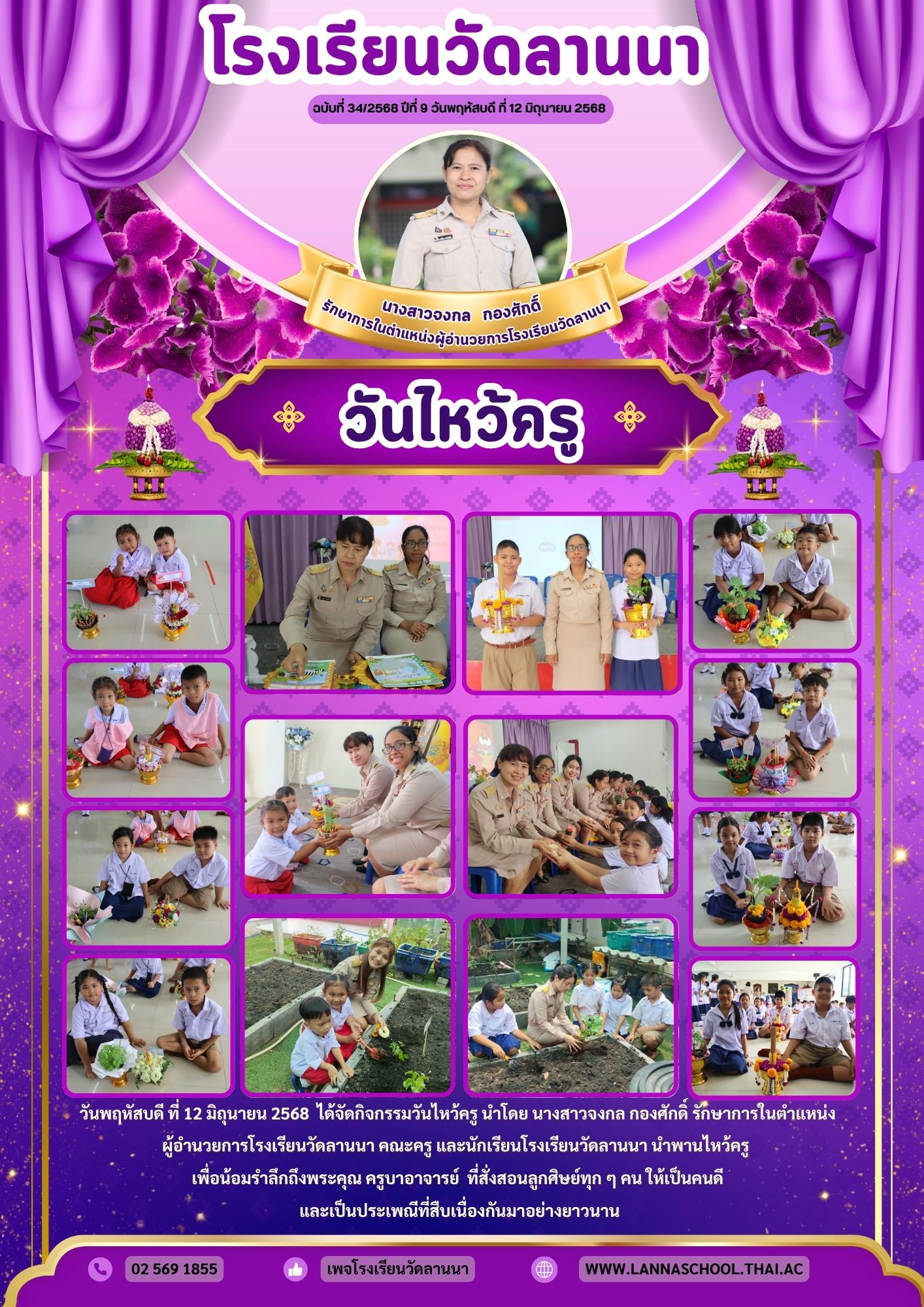 โรงเรียนวัดลานนา จัดกิจกรรมวันไหว้ครู เพื่อน้อมรำลึกถึงพระคุณ ครูบาอาจารย์ ที่สั่งสอนลูกศิษย์ทุก ๆ คน ให้เป็นคนดี และเป็นประเพณีที่สืบเนื่องกันมาอย่างยาวนาน
