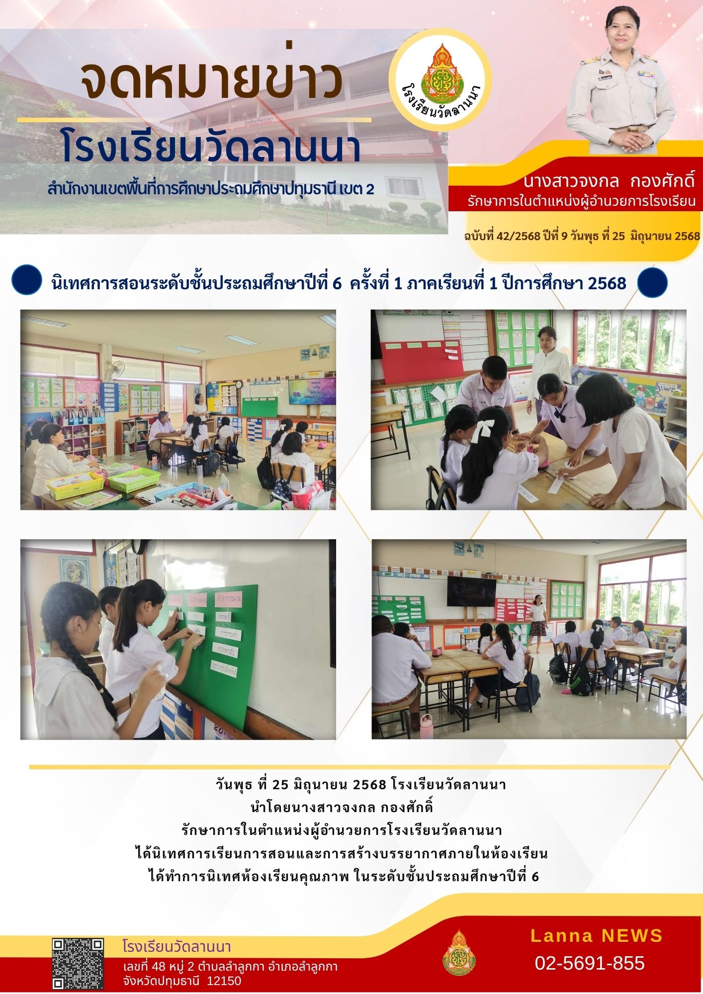โรงเรียนวัดลานนา ได้นิเทศการเรียนการสอน ในระดับชั้นประถมศึกษาปีที่ 6