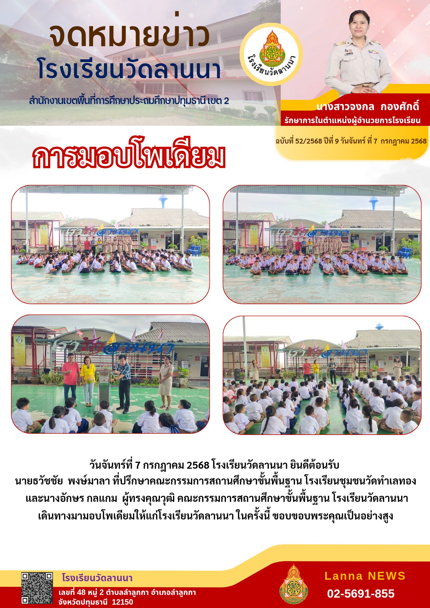 วันจันทร์ที่ 7 กรกฎาคม 2568 โรงเรียนวัดลานนา ยินดีต้อนรับ